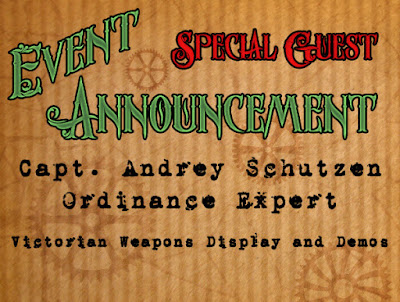 Vintage weapons Enthusiasts take heed! Special guest "Capt. Andrey Schutzen, Ordinance Expert", will be coming out to our Market with a showcase of authentic Victorian era swords and guns. Stop by Captain Andrey's table, to witness his display of "Infernal devices- a century of innovation by the master mechanics", see demos, and hear tales of these vintage armaments.
